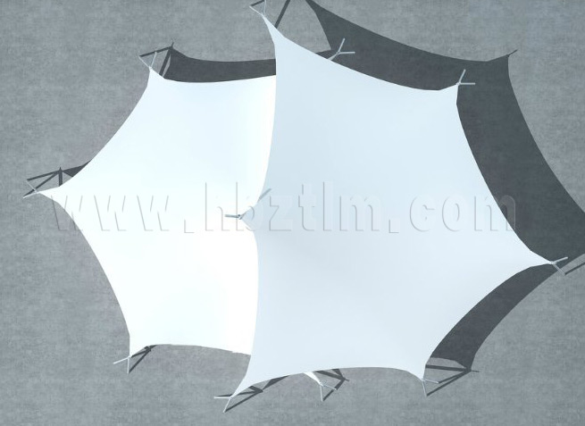膜材采用PVDF國產(chǎn)或者進口建筑膜材、PTFE玻璃纖維建筑膜材、ETFE透明的永久性建筑膜材;自動放樣裁剪,高頻焊接,拉伸效果超強,曲線成型可千變萬化;膜材質保一般可達15-20年。