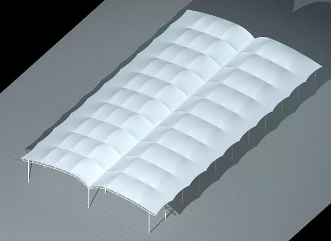 膜材采用PVDF國產(chǎn)或者進口建筑膜材、PTFE玻璃纖維建筑膜材、ETFE透明的永久性建筑膜材;自動放樣裁剪,高頻焊接,拉伸效果超強,曲線成型可千變?nèi)f化;膜材質(zhì)保一般可達15-20年。